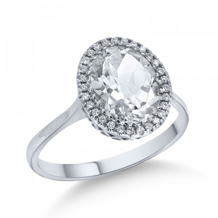 Δαχτυλίδι Λευκόχρυσο 18 Καράτια Με Διαμάντια και Λευκό Ζαφείρι oro2781
