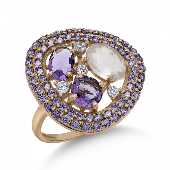 Δαχτυλίδι Ροζ Χρυσό 14 Καρατίων Με Ροζ Και Μωβ Quartz oro2749