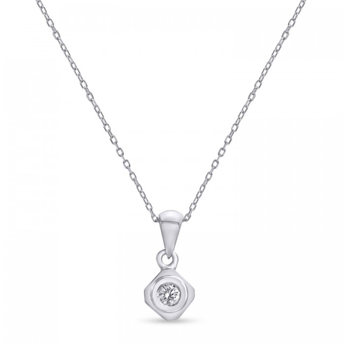 Ένα κομψό κολιέ σε λευκόχρυσο 18 καρατίων, με διαμάντι διαστάσεως Br0,07,διαθέτει αλυσίδα 40 εκατοστών 14 καρατίων.Ευκολοφόρετο για όλες τις ώρες.Συνοδεύεται από εγγύηση.