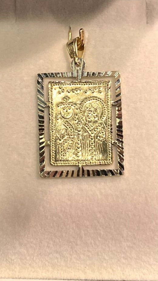 Ένα όμορφο φυλαχτό-Κωνσταντινάτο σε χρυσό 14 καρατίων διπλής όψεως από την μια ο Άγιος Κωνσταντινός με την Άγια Ελένη και από την άλλη ο Χριστός. Διατίθεται δωρεάν μαζί με επίχρυση παραμάνα και ματάκι έαν το επιθυμείτε,κατάλληλο για δώρο.