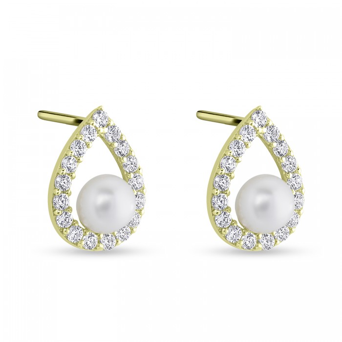 Σκουλαρίκια Χρυσά 14 Καράτια Με Μαργαριτάρι Και Ζιργκόν oro2916