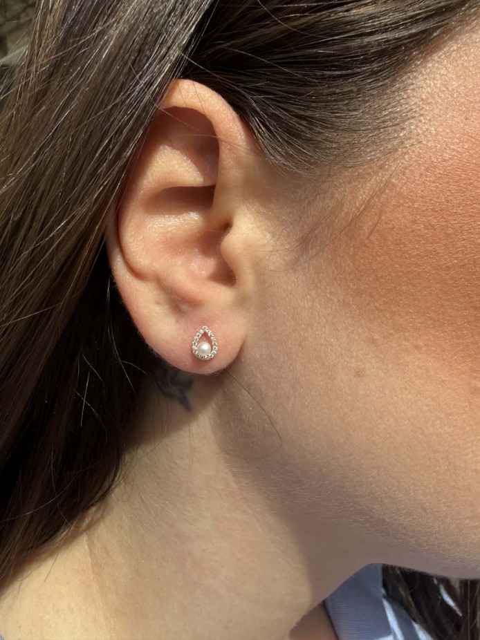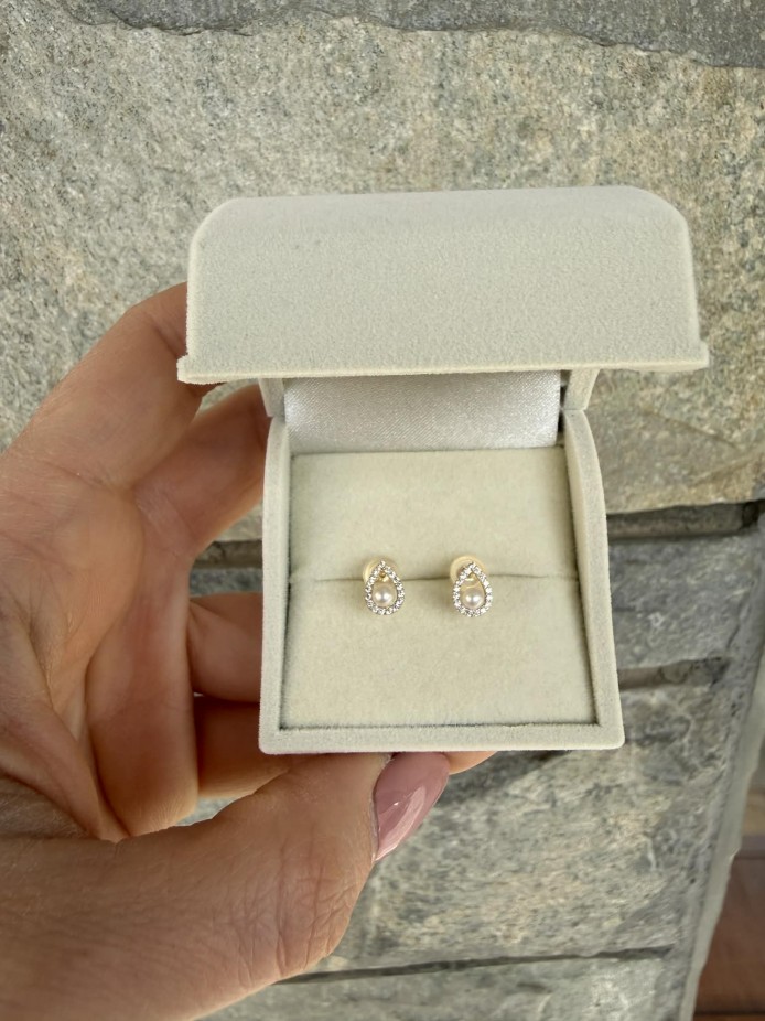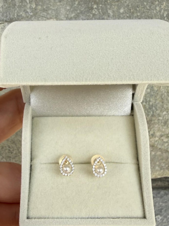Σκουλαρίκια Χρυσά 14 Καράτια Με Μαργαριτάρι Και Ζιργκόν oro2916