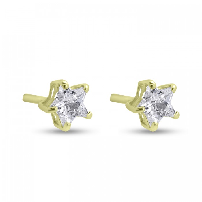 Ένα πανέμορφο σκουλαρίκι χρυσό στα 9 καράτια με λευκά ζιργκόν σε σχέδιο αστέρι, ευκολοφόρετα για όλες τις ώρες.