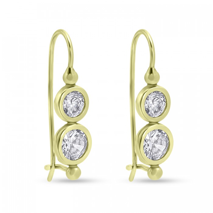 Σκουλαρίκια Χρυσά με Διπλό Ζιργκόν 14 Καράτια oro2940
