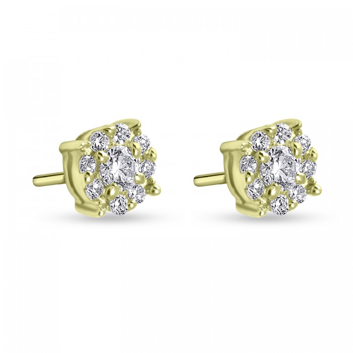 Σκουλαρίκια Χρυσά Ροζέτες 14 Καράτια Με Ζιργκόν oro2926