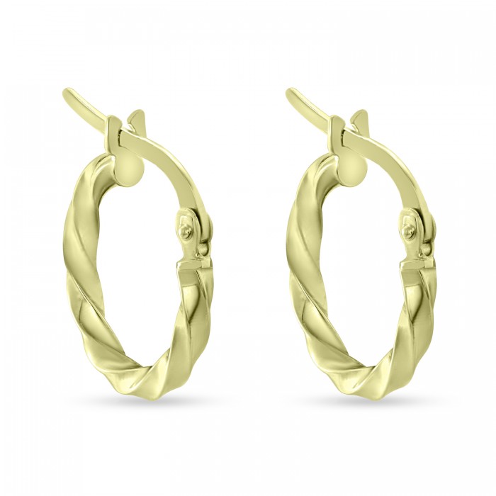 Διακριτικά και κομψά σκουλαρίκια-κρίκοι σε στυλ πλεξούδας σε κίτρινο χρυσό 9 καρατίων, διαστάσεως 1.3 cm . Ευκολοφόρετα για όλες τις ώρες.