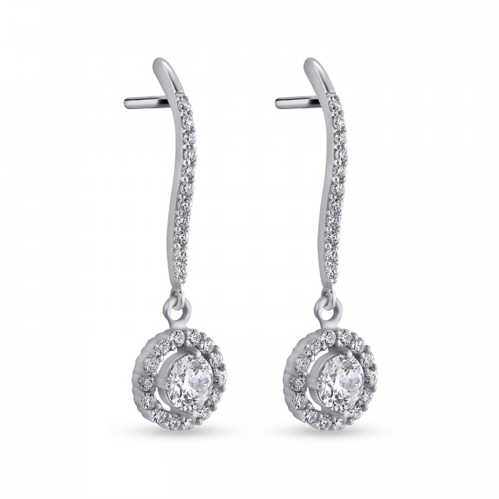 Σκουλαρίκια Λευκόχρυσα 14 Καράτια Mε Ζιργκόν oro2913