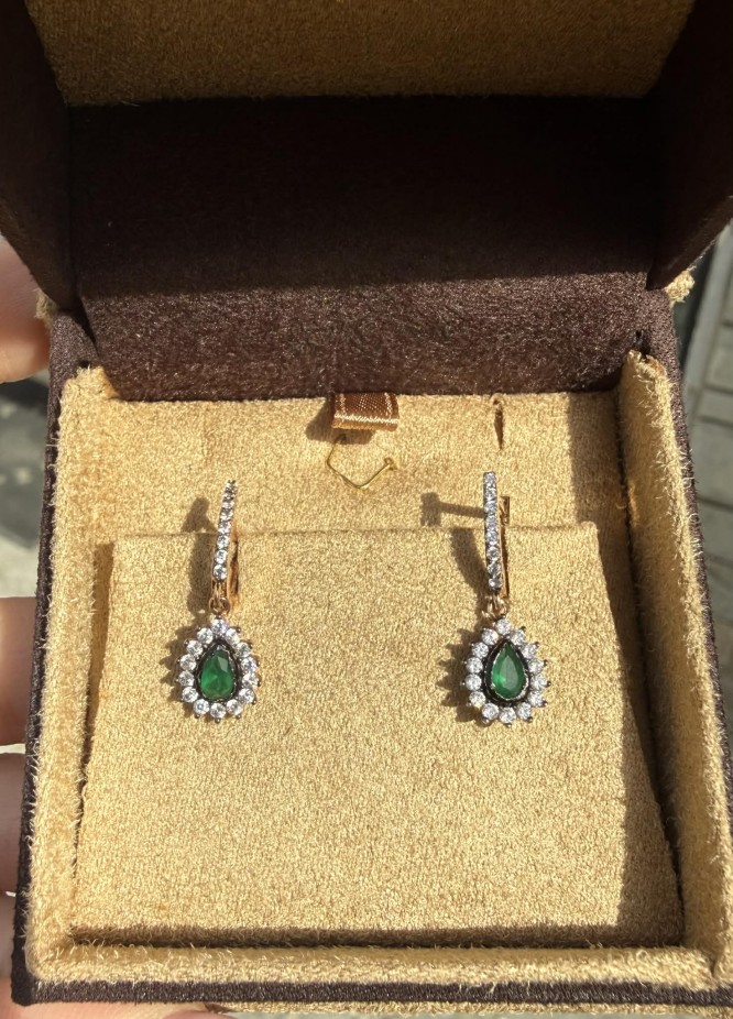Πανέμορφα και εντυπωσιακά σκουλαρίκια, σε ροζ χρυσό 14 καρατίων σε σχέδιο σταγόνας με σμαραγδίτη στο..
