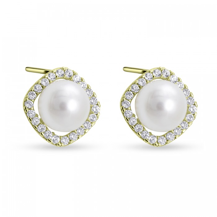 Σκουλαρίκια Ροζέτες Χρυσά 14 Καράτια Με Μαργαριτάρι και Ζιργκόν oro2929
