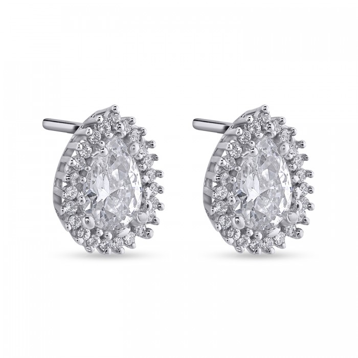 Σκουλαρίκια Σταγόνες Λευκόχρυσα 14 Καράτια Mε Ζιργκόν oro2914