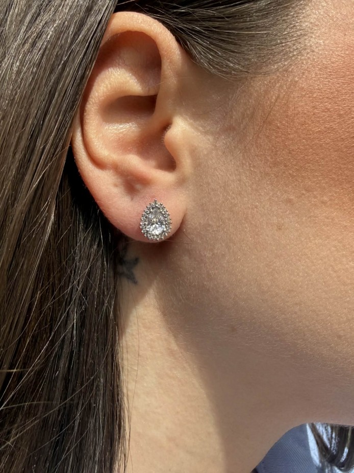 Εντυπωσιακά και κομψά σκουλαρίκια, λευκόχρυσα σε σχήμα σταγόνας στα 14 καράτια με λευκά λαμπερά ζιργκόν. Ευκολοφόρετα και κατάλληλο για δώρο.