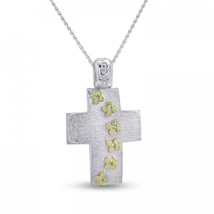 Σταυρός Δίχρωμος Λευκόχρυσο-Χρυσό 14 Καράτια Με Αλυσίδα oro2792