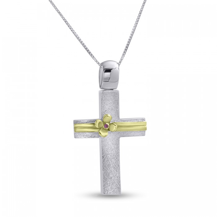 Σταυρός Δίχρωμος Λευκόχρυσο-Ροζ Χρυσό 14 Καράτια Με Αλυσίδα oro2791