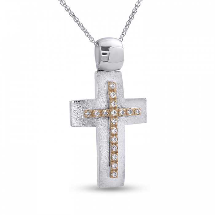 Σταυρός Δίχρωμος Λευκόχρυσο-Ροζ Χρυσό 14 Καράτια Με Αλυσίδα oro2793