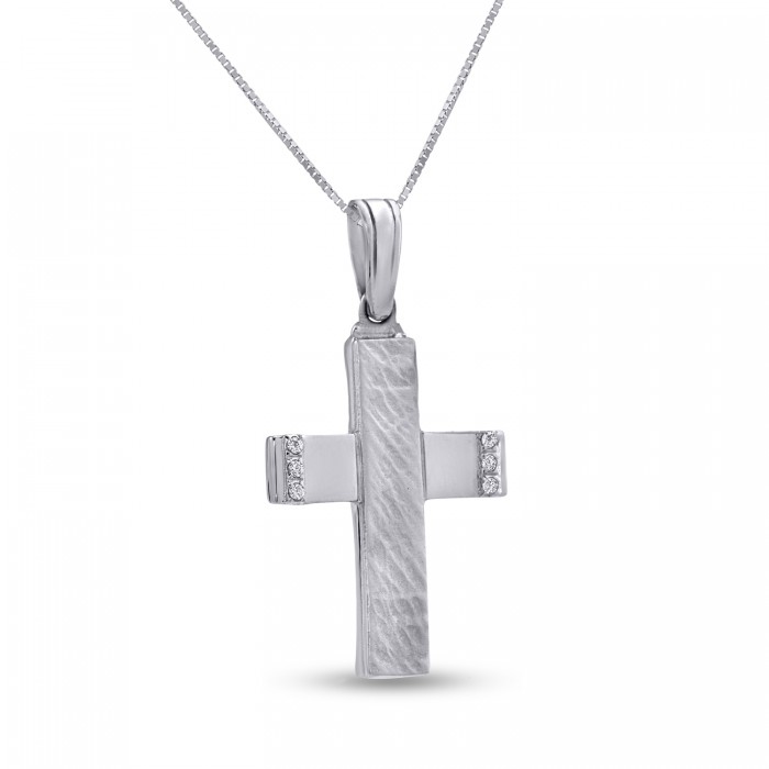 Σταυρός Διπλής όψεως Με Αλυσίδα Λευκόχρυσος, 14 Καράτια, Λευκά Ζιργκόν oro2804