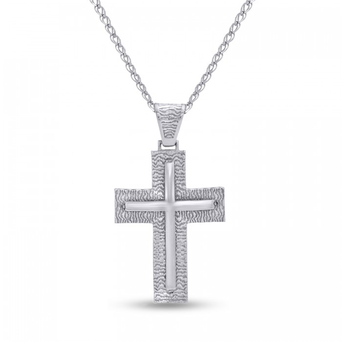 Σταυρός Λευκόχρυσος 14 Καράτια Με Αλυσίδα oro2849