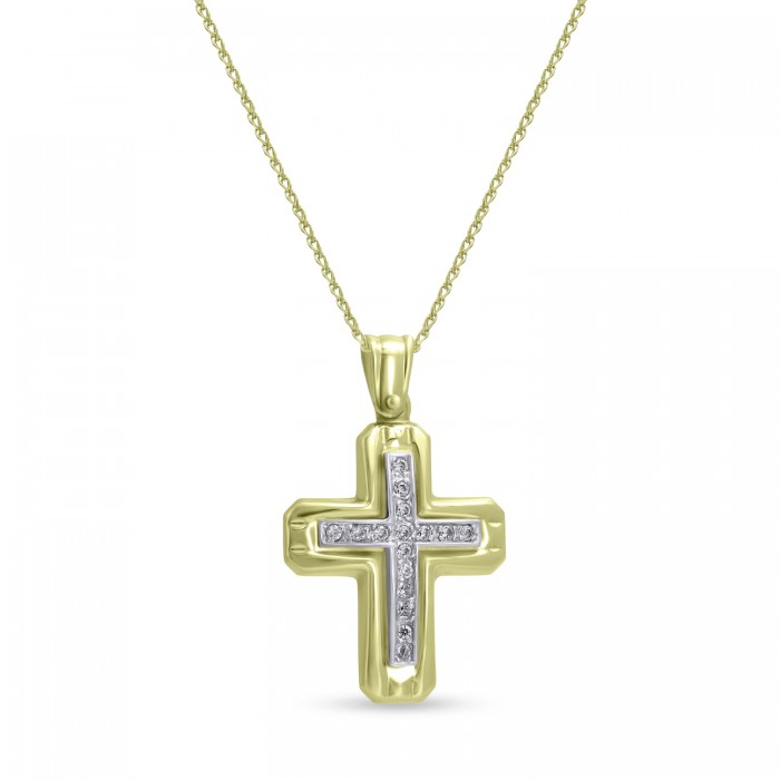 Σταυρός Με Αλυσίδα Χρυσός, 14 Καράτια, Λευκά Ζιργκόν oro2894