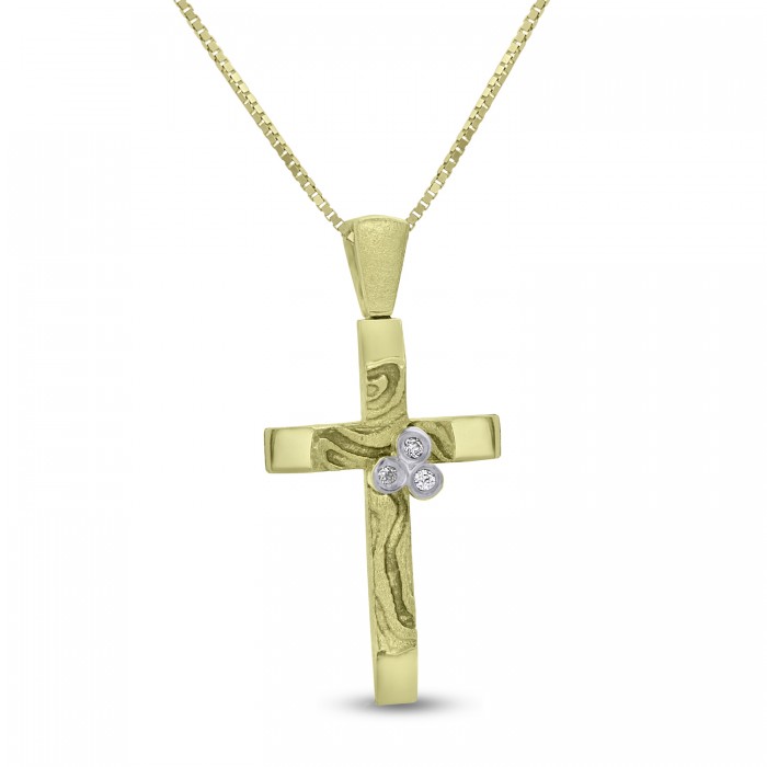 Sale Σταυρός Με Αλυσίδα,Χρυσός,14 Καράτια Με Λευκό Ζιργκόν oro2841