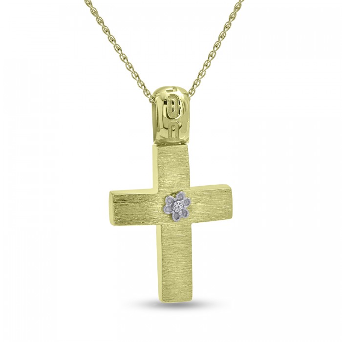 Ένας μοντέρνος και ιδιαίτερος σταυρός χειροποίητος σε χρυσό 14 καρατίων, με λευκά ζιργκόν. Κατάλληλος για κάθε περίσταση,διαθέτει αλυσίδα 40 εκατοστών.