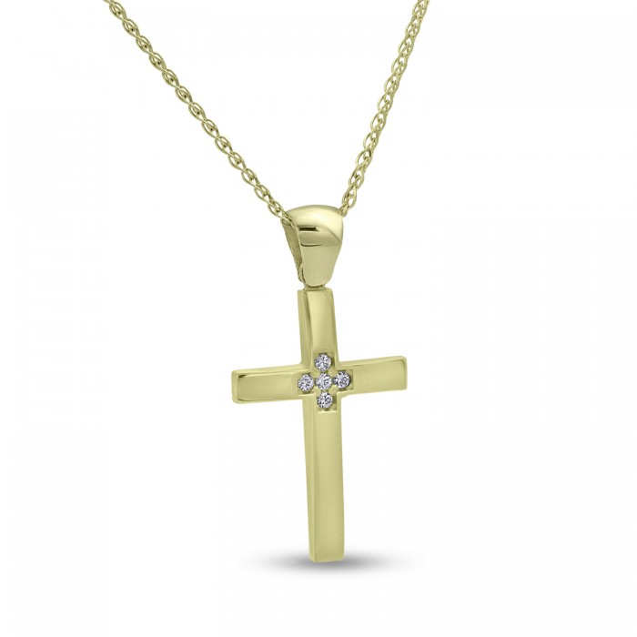 Σταυρός Με Αλυσίδα,Χρυσός,14 Καράτια Με Λευκό Ζιργκόν oro2846
