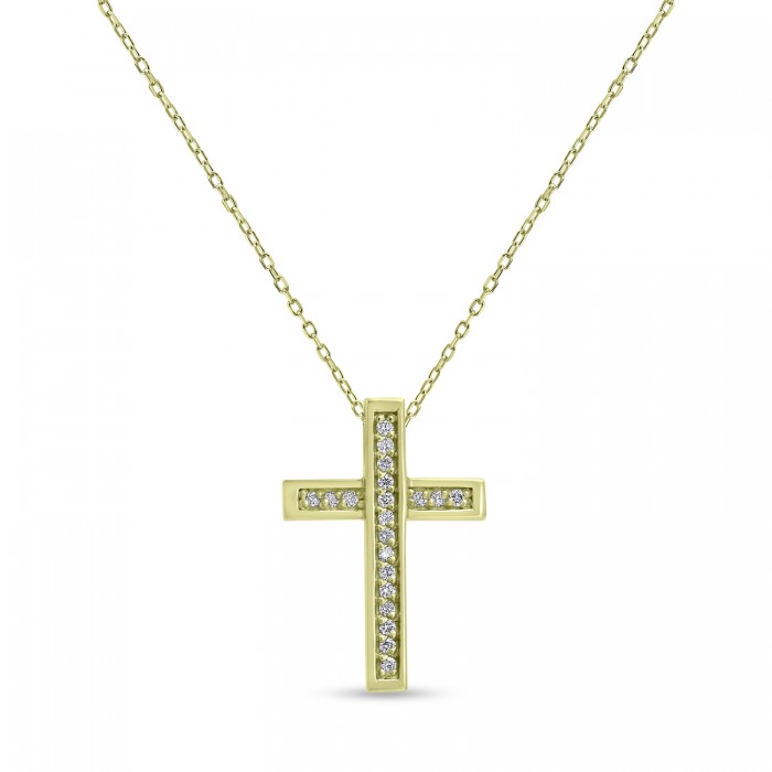 Σταυρός Με Αλυσίδα Χρυσός, 18 Καράτια, Λευκά Μπριγιάν oro2891