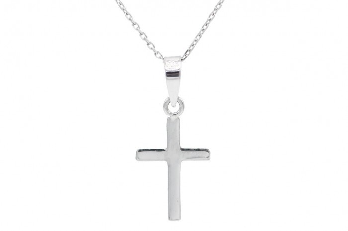 Διακριτικό και κομψό κολιέ-σταυρός με αλυσίδα, λευκόχρυσο 14 καρατίων .Συνοδεύεται από εγγύηση,κατάλληλο για δώρο.