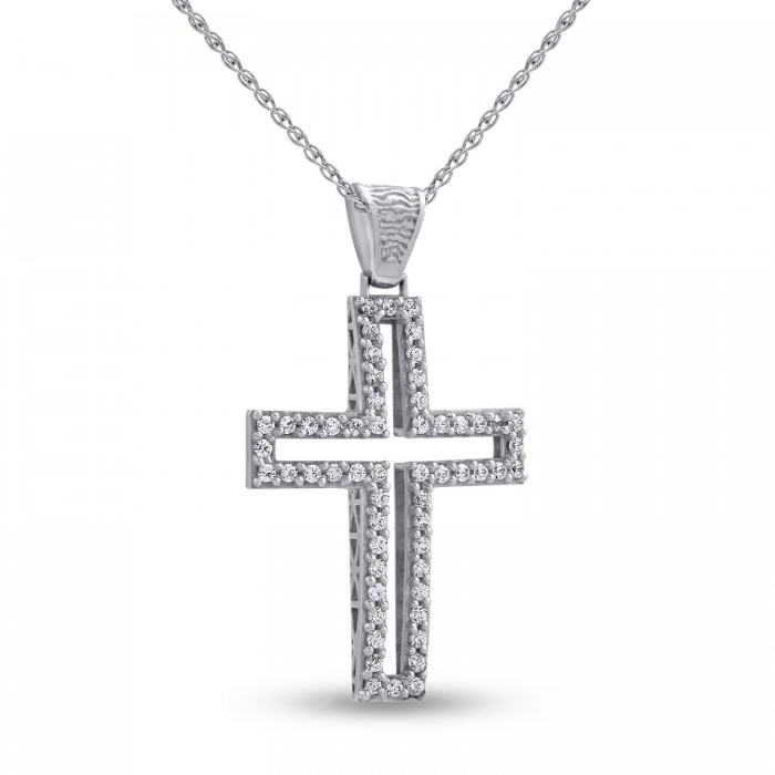 Σταυρός Με Αλυσίδα Λευκόχρυσος, 14 Καράτια, Λευκά Ζιργκόν oro2787
