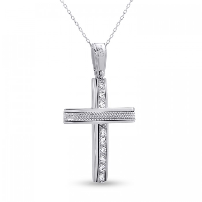 Σταυρός Με Αλυσίδα Λευκόχρυσος, 14 Καράτια, Λευκά Ζιργκόν oro2798