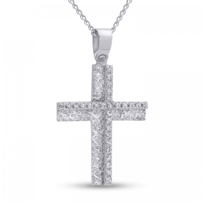 Σταυρός Με Αλυσίδα Λευκόχρυσος, 14 Καράτια, Λευκά Ζιργκόν oro2801