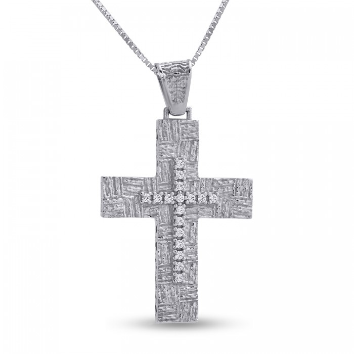 Σταυρός Με Αλυσίδα Λευκόχρυσος, 14 Καράτια, Λευκά Ζιργκόν oro2815