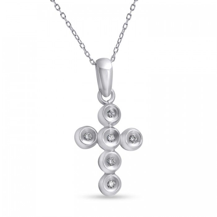 Σταυρός Με Αλυσίδα Λευκόχρυσος, 18 Καράτια, Λευκά Μπριγιάν oro2882