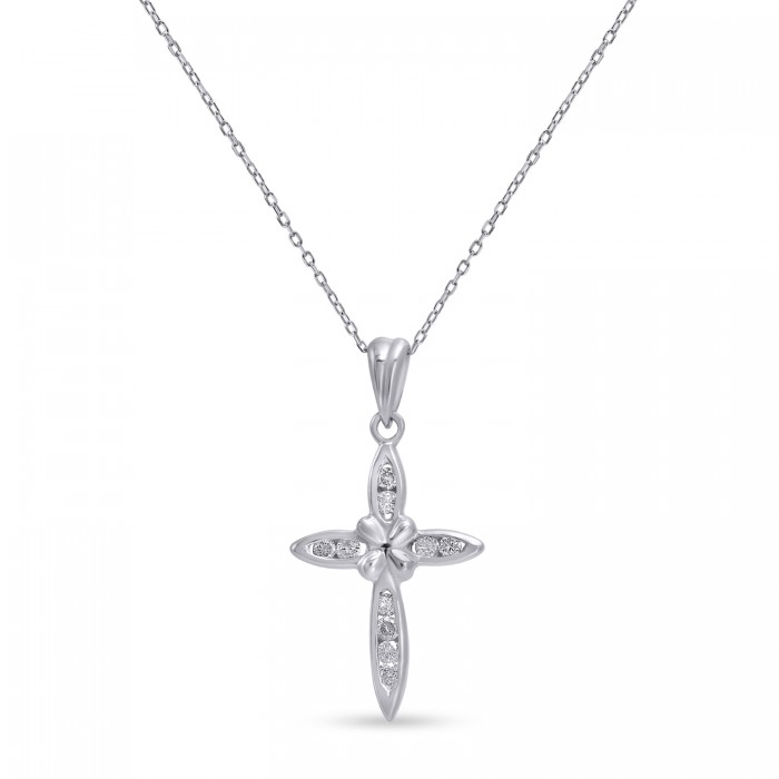 Σταυρός Με Αλυσίδα Λευκόχρυσος, 18 Καράτια, Λευκά Μπριγιάν oro2889
