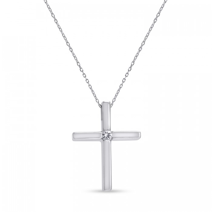 Σταυρός Με Αλυσίδα Λευκόχρυσος, 18 Καράτια, Λευκό Μπριγιάν oro2883