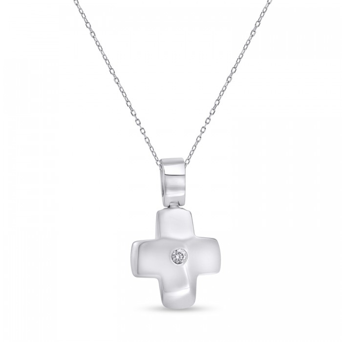Σταυρός Με Αλυσίδα Λευκόχρυσος, 18 Καράτια, Λευκό Μπριγιάν oro2886