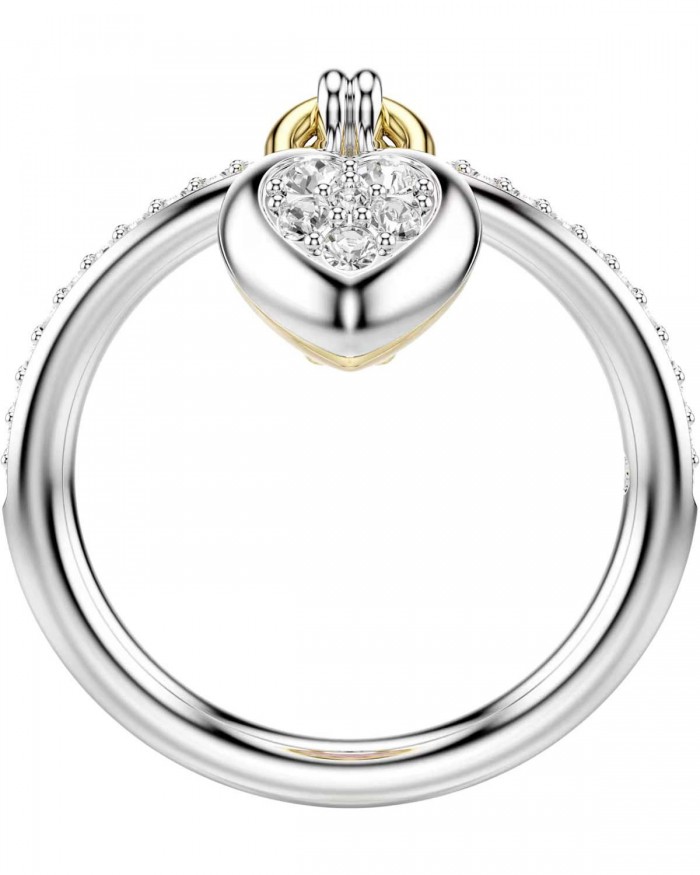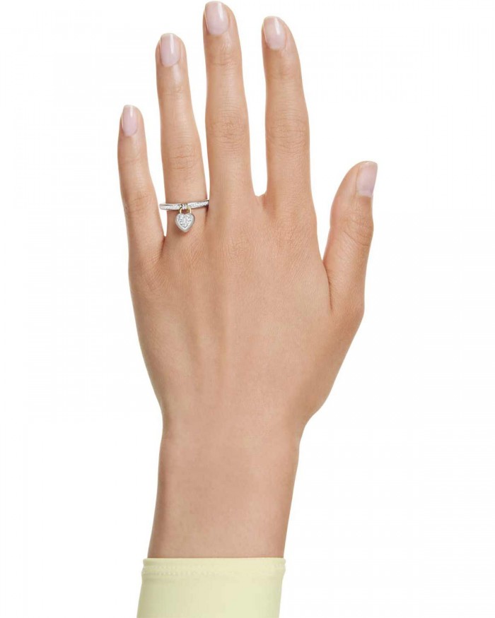 Ως σύμβολο αφοσίωσης, αυτό το λεπτό δαχτυλίδι είναι διακοσμημένο με διαφανή κρύσταλλα pavé και διαθέτει μια καρδιά εμπνευσμένη από τα μενταγιόν locket στο κέντρο. Το ρομαντικό μοτίβο περιλαμβάνει ένα ροζ Swarovski Zirconia σε σχήμα καρδιάς με επιμετάλλωση σε χρυσό τόνο στη μία πλευρά και διαφανή κρύσταλλα pavé με επιμετάλλωση ροδίου στην άλλη πλευρά. Φορέστε το με το ασορτί άκαμπτο βραχιόλι για να αναδείξετε στο μέγιστο την εμφάνιση της αγάπης.