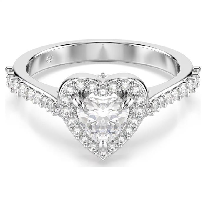 Swarovski Δαχτυλίδι Una Angelic Μείξη κοπών, Καρδιά, Λευκό, Επιμετάλλωση ροδίου 5744046