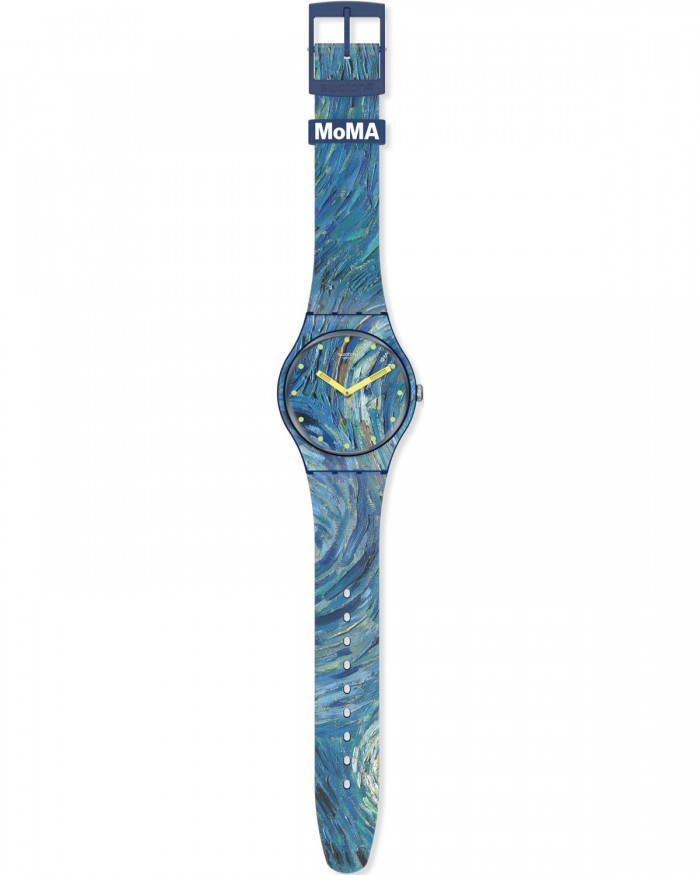 Ο οίκος SWATCH σε συνεργασία με το Μουσείο μοντέρνας τέχνης της Νέας Υόρκης (MoMA) παρουσιάζει ένα ξεχωριστό και όμορφο ωρολόι στο οποίο απεικονίζεται τμήμα από το πίνακα “The Stary Night” του Vincent Van Gogh. Η μοναδική αισθητική του καλλιτέχνη αποτυπώνεται πάνω στο λουρί και το καντράν, με τα στοιχεία να ακολουθούν την ίδια σχεδιαστική νόρμα, και οι λιτές γραμμές μαζί με τις λιγοστές λεπτομέρειες επιτρέπουν την καλύτερη απεικόνιση του έργου. Αυτό το μοναδικό αξεσουάρ θα δώσει μια καλλιτεχνική νότα στην εμφάνιση σας.