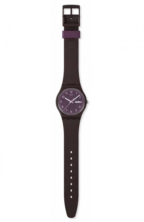 Ρολόι ελβετικής κατασκευής από την εταιρεία Swatch με μαύρο λουράκι από σιλικόνη και ένδειξη ημέρας ..