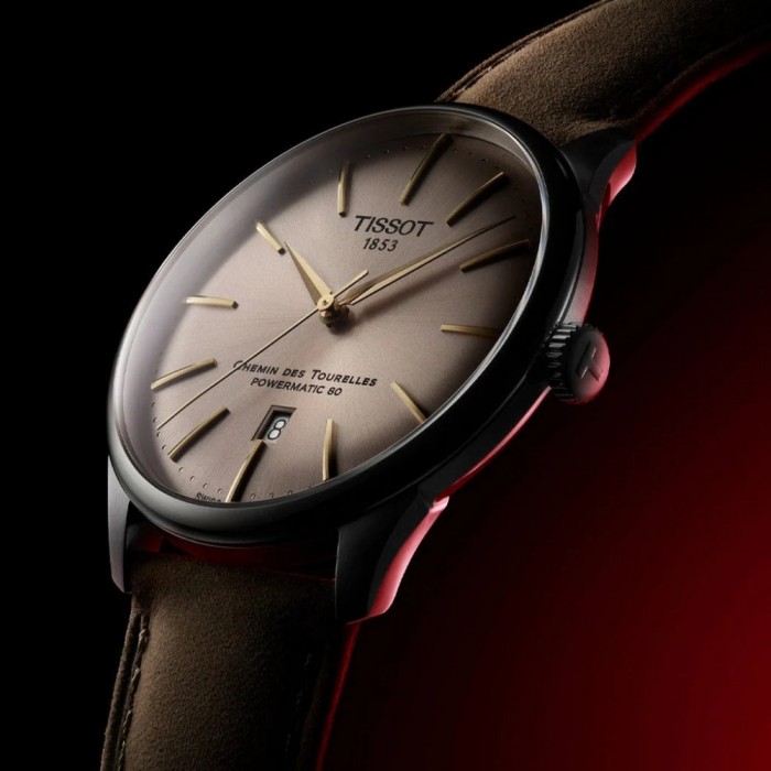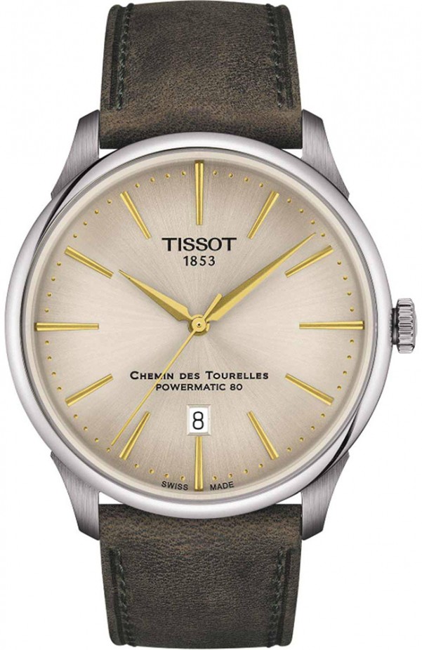 TISSOT Chemin Des Tourelles Powermatic 80 Brown-Green Leather Strap T1394071626100