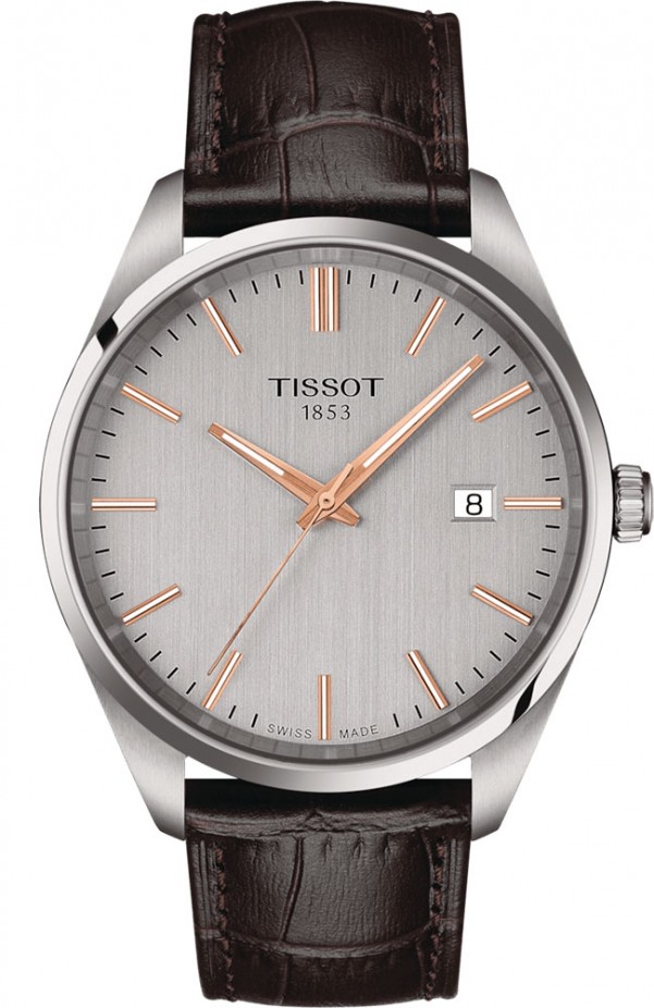 Ένα υπέροχο ρολόι από τον ελβετικό οίκο Tissot με καφέ δερμάτινο λουράκι, ασημί κάσα από ανοξείδωτο ..