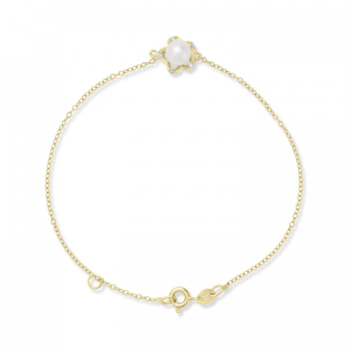 Βραχιόλι Χρυσό 14 Καράτια Με Μαργαριτάρι Και Ζιργκόν oro2731
