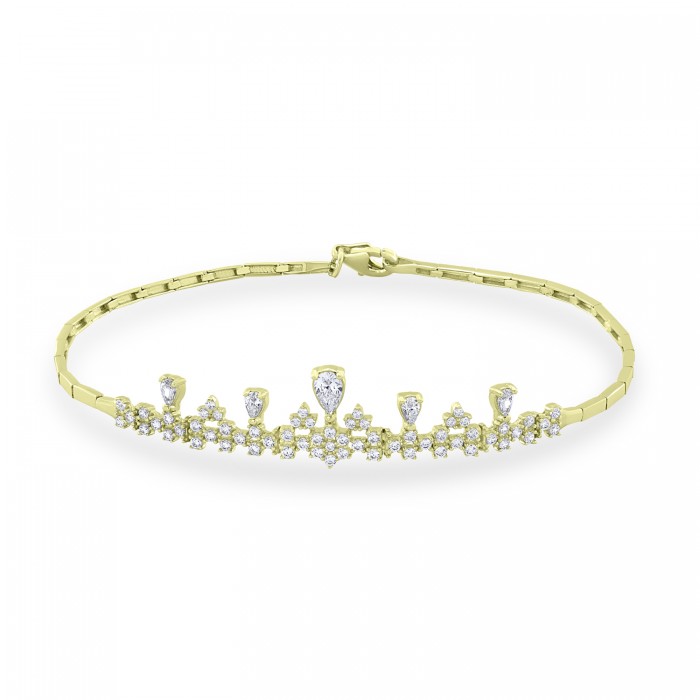 Κοσμήστε τον καρπό σας με φως φορώντας αυτό το λαμπερό βραχιόλι,χρυσό στα 14 καράτια με λαμπερά ζιργκόν διαφορετικής κοπής από στρογγυλά ως σταγόνες.