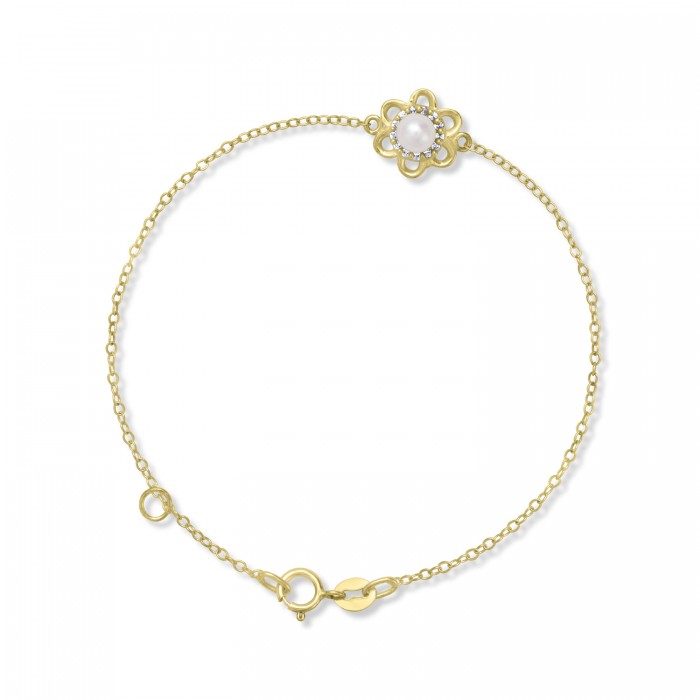 Βραχιόλι Χρυσό 9 Καράτια Με Μαργαριτάρι Και Ζιργκόν oro2730