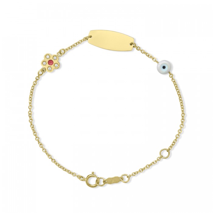 Βραχιόλι Ταυτότητα Χρυσό 9 Καράτια Μάτι-Λουλούδι oro2733